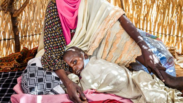 Kaltoum werpt haar blik op haar 5-jarige zoontje. Ze is bang. Adoum heeft een infectie in zijn mond en ziet er ernstig ondervoed uit. Samen met drie van haar kinderen vluchtte de 30-jarige moeder een paar maanden geleden naar Tsjaad vanuit Soedan.