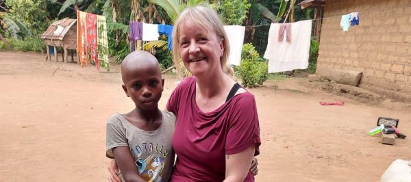 Na twee uur rijden over slecht terrein konden we niet meer verder. We kwamen aan bij een brug, die eerder dit jaar volledig onder water was komen te staan door overstromingen. De brug was niet meer betrouwbaar om met een jeep overheen te rijden. Daarom liepen we het laatste stuk naar het kleine dorp, bestaande uit negen lemen huisjes. Hier woont mijn sponsorkind Tamba. Ik had mezelf van tevoren afgevraagd of ik hem gelijk zou herkennen, maar toen ik hem zag, herkende ik hem direct. Onze ontmoeting begon met een dikke knuffel.