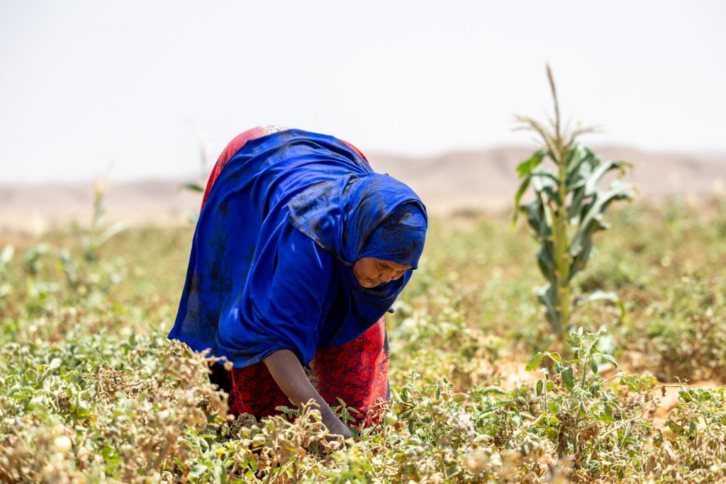 Fadumo werkt in haar tuintje.